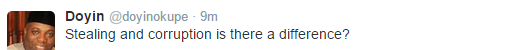 Presidential aide Doyin Okupe just set his boss, president Jonathan, up by asking a simple question "Stealing and corruption, is there a difference?"