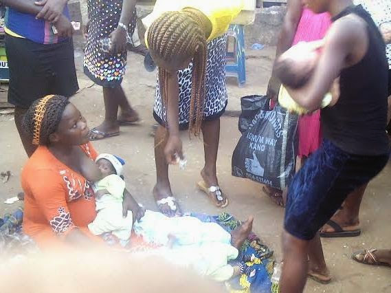 Photos: Aww, a woman with triplet spotted begging in Awka market