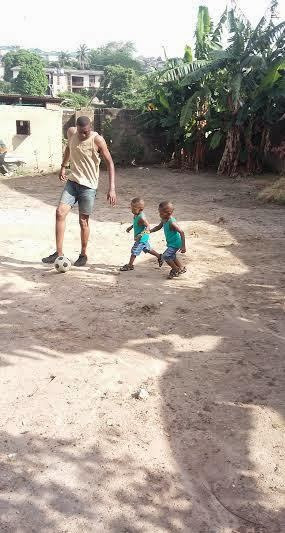 Photos: OAP Osam and his twin boys enjoy a game of football