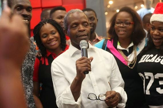 APC VP candidate, Professor Yemi Osinbajo turned up at the Lekki Palms on Christmas Eve in the company of carolers and choreographers. He made a short speech, wished everyone a Merry Christmas and went around the mall, shaking hands with people, signing autographs and taking selfies. He also gave out his contact details as well. See more photos after the cut...